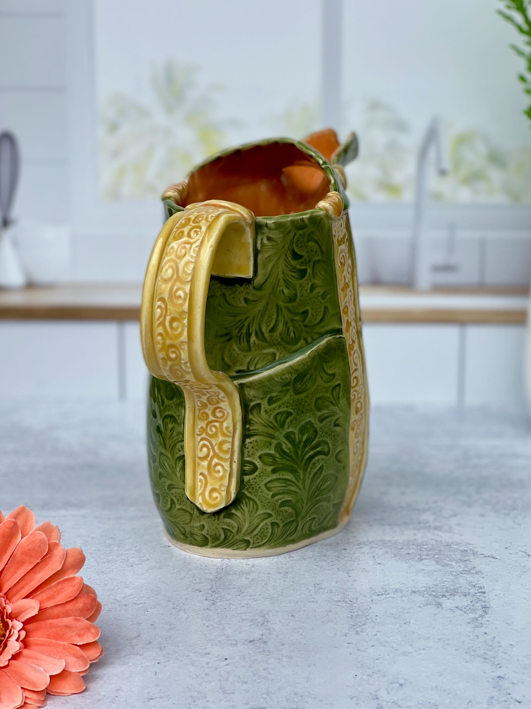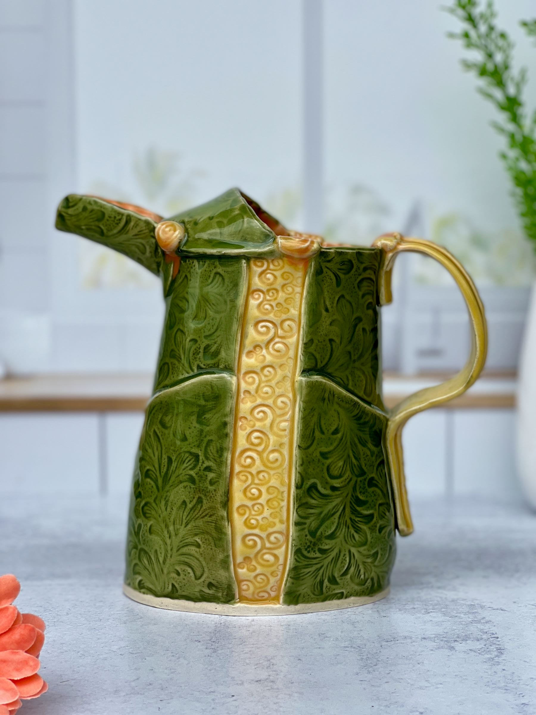 Slab Built Porcelain Jade and Marigold Glazed Pitcher