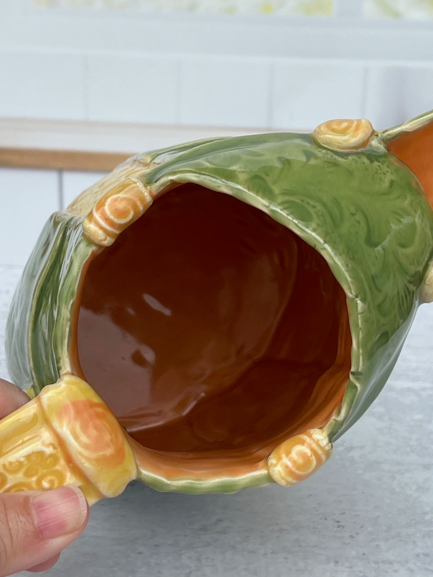 This beautiful pitcher can be used for holding liquids to drink or for flowers from your garden as a vase. However you decide to use it, I'm sure it will be a delight to have around your home even as a decoration in and of itself.