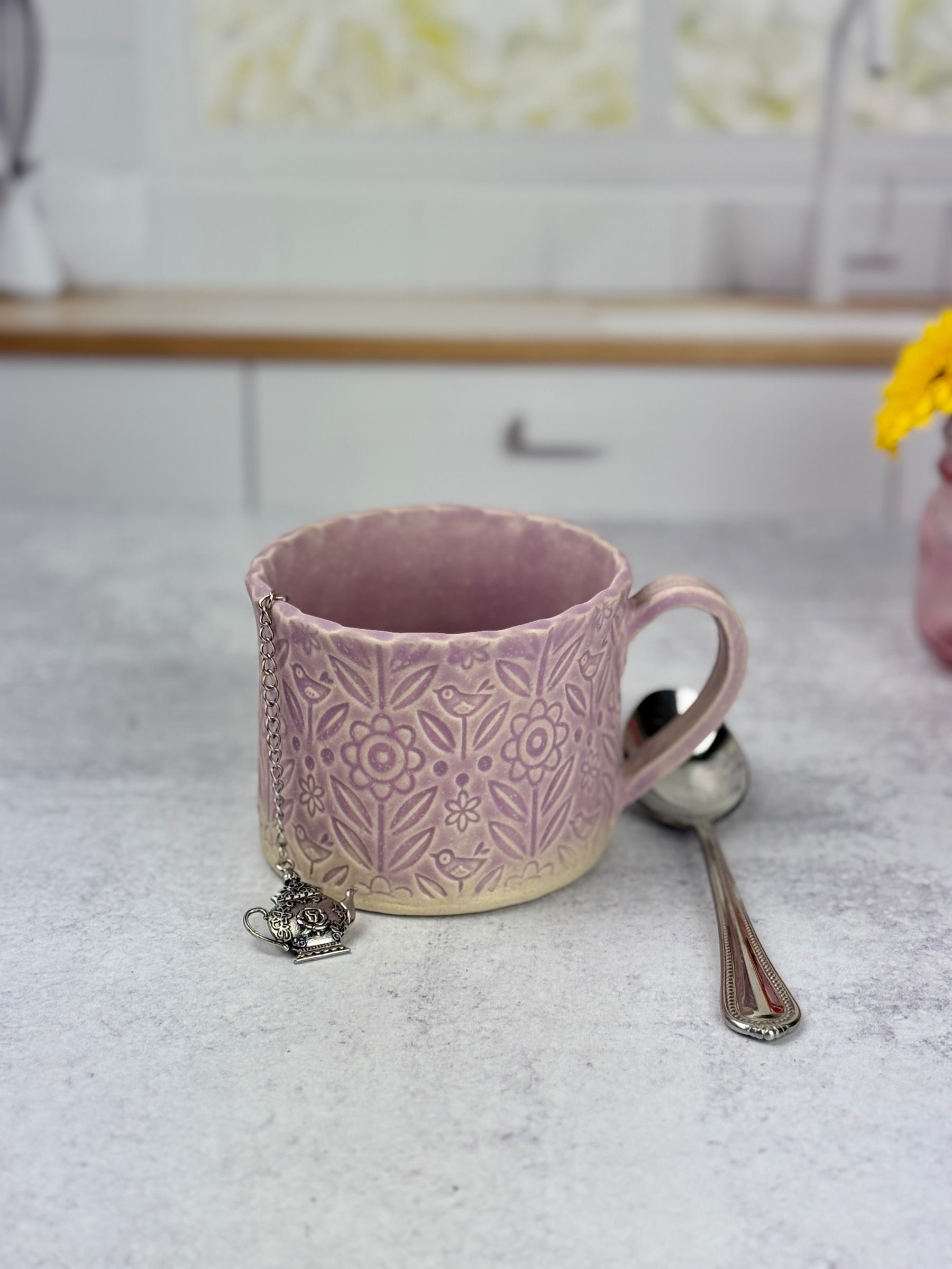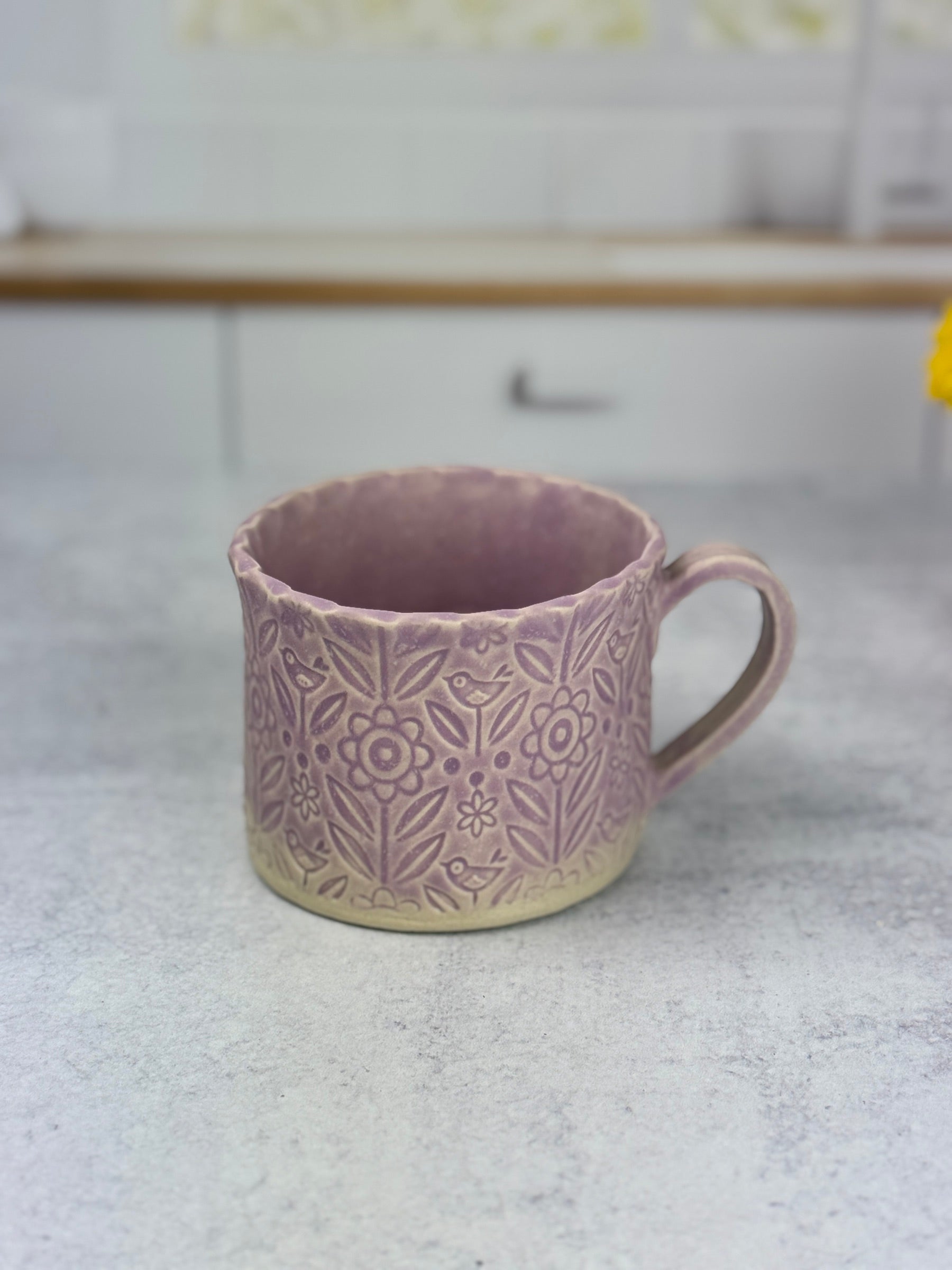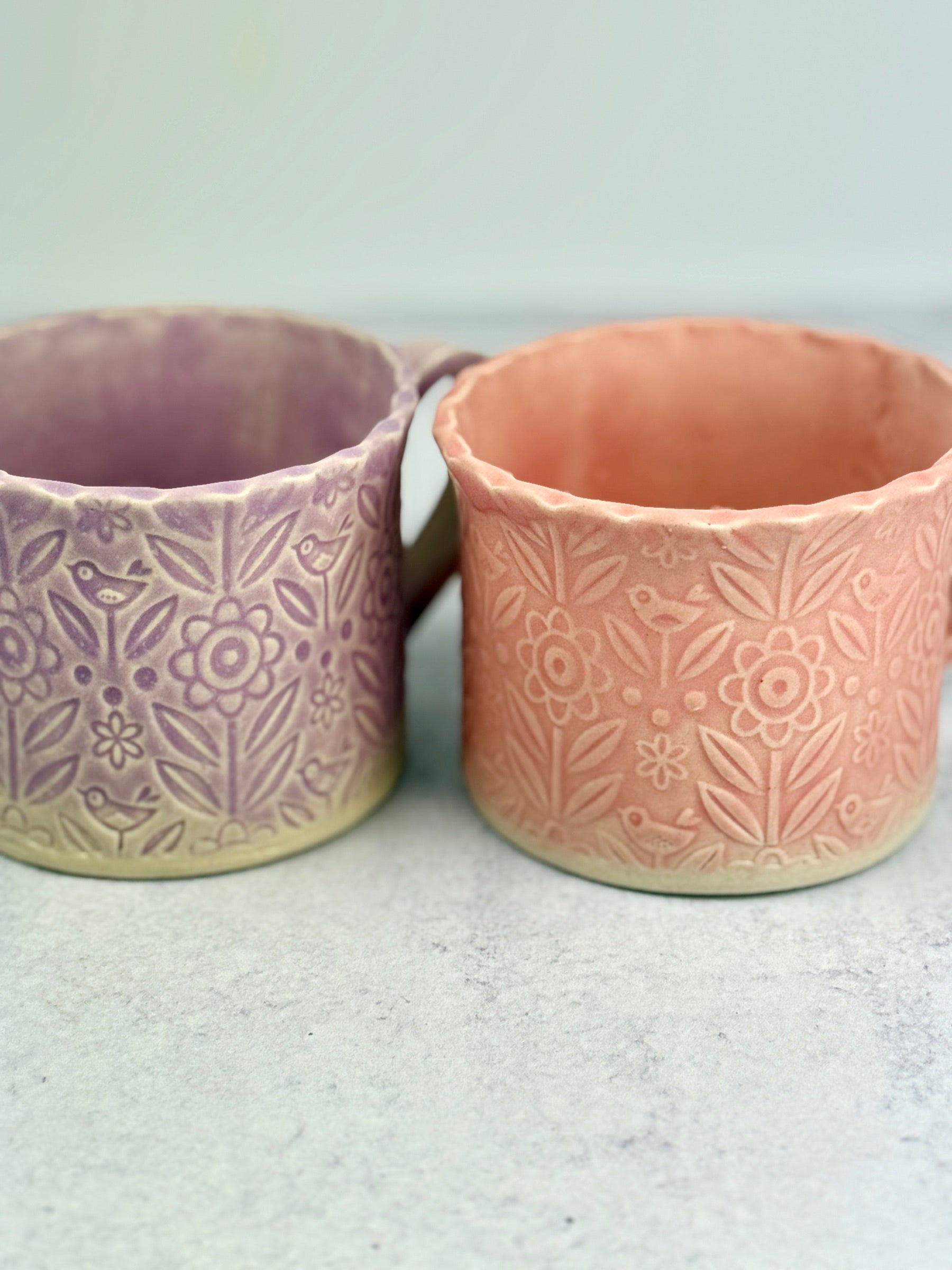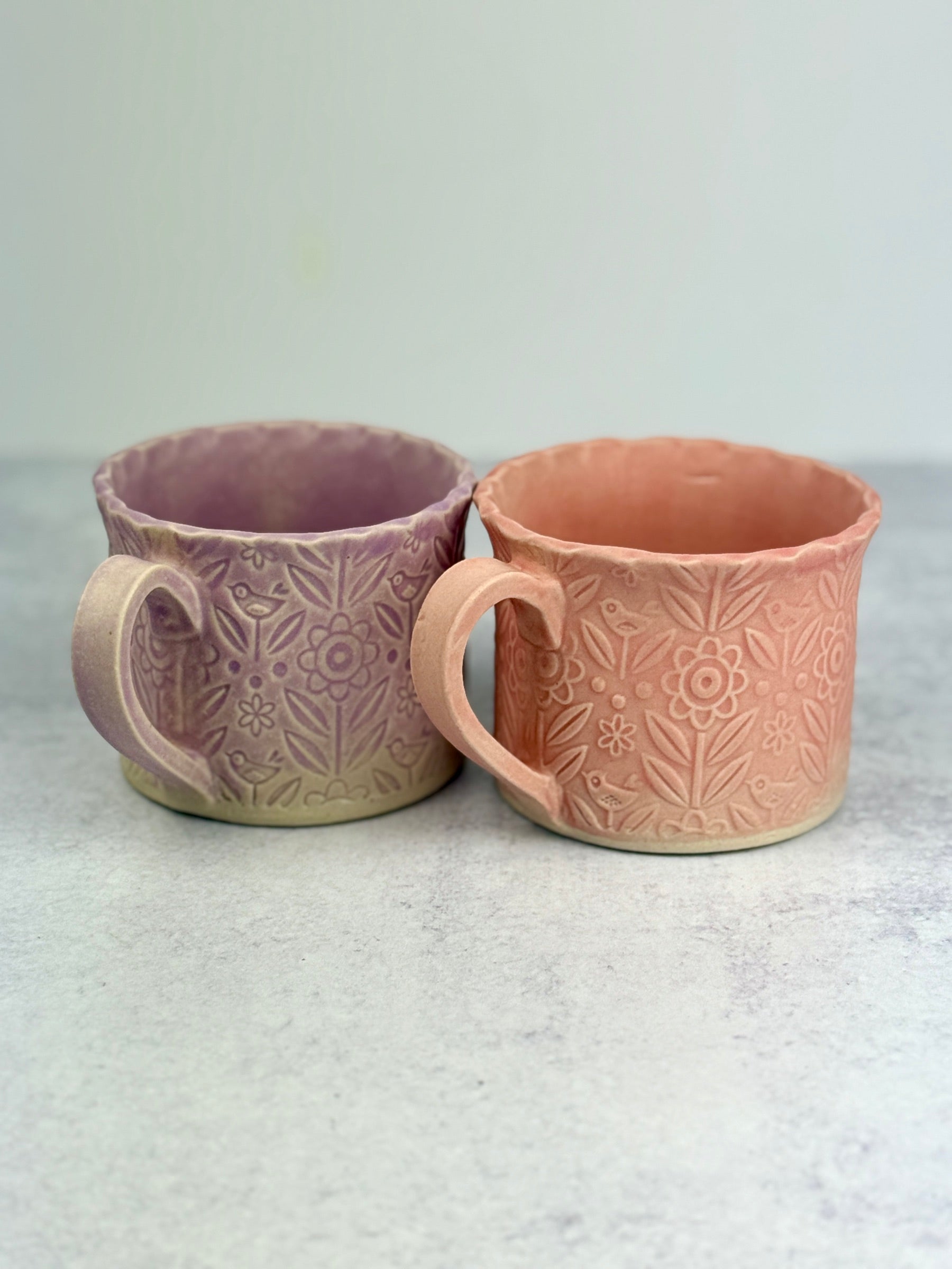 Introducing our Flower Textured Mugs, available in cheerful pink and light purple. These delightful mugs bring a touch of spring to your drinkware collection, perfect for both kids and adults.