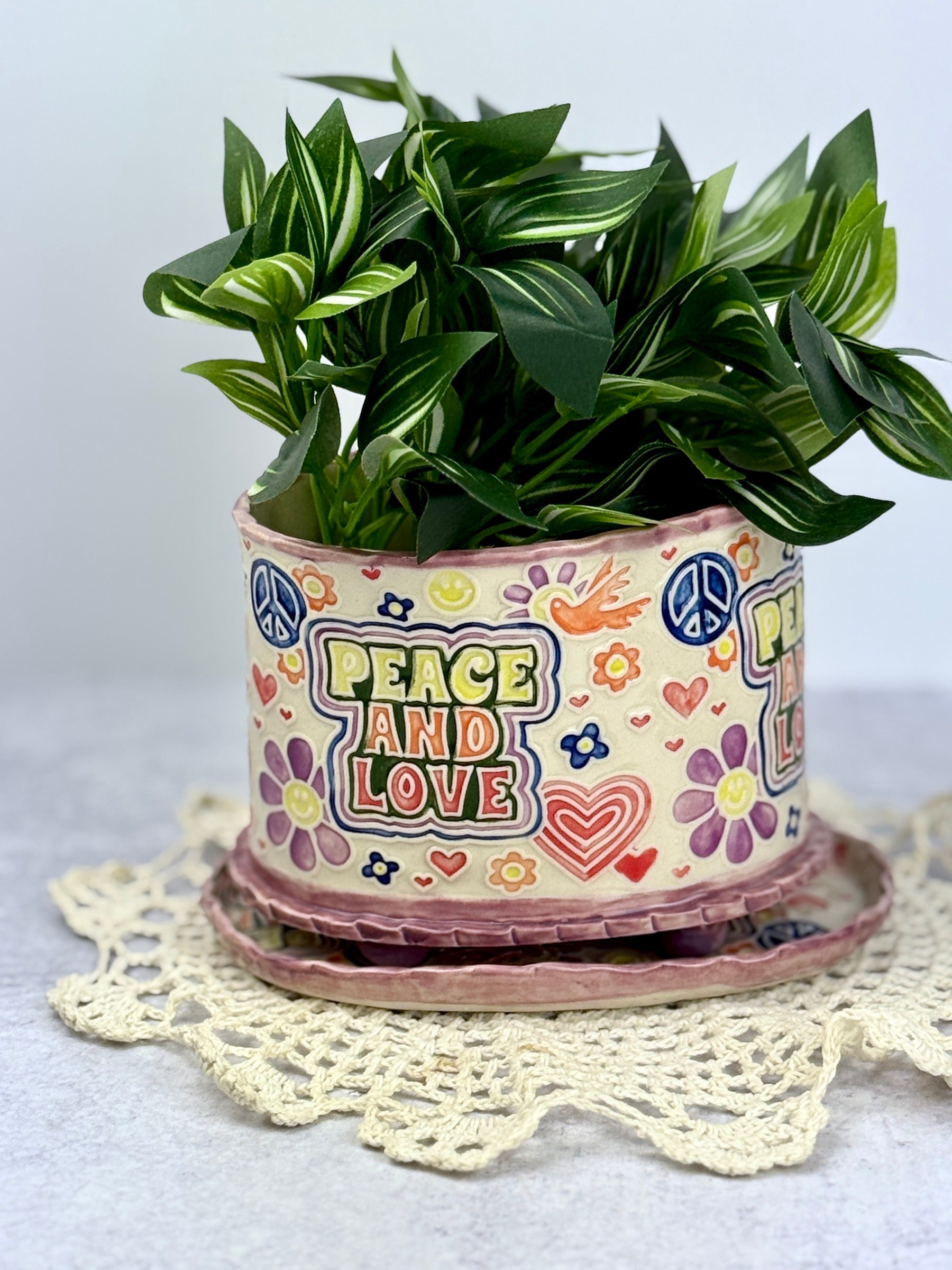 Peace and Love Planter With Drain Tray