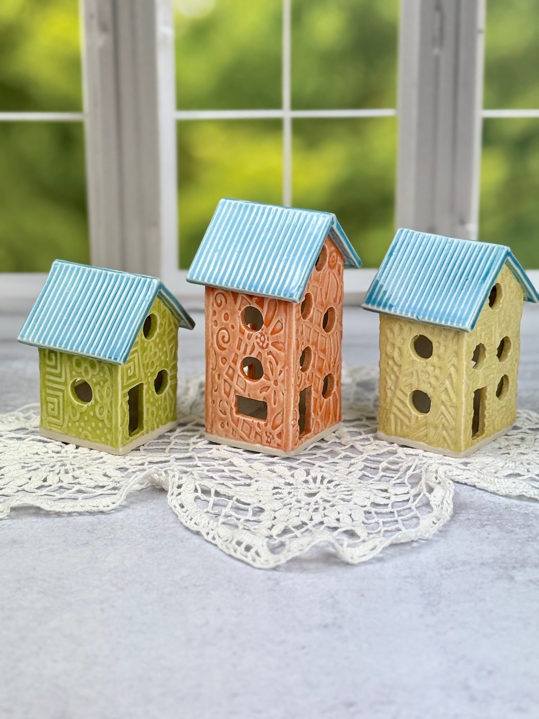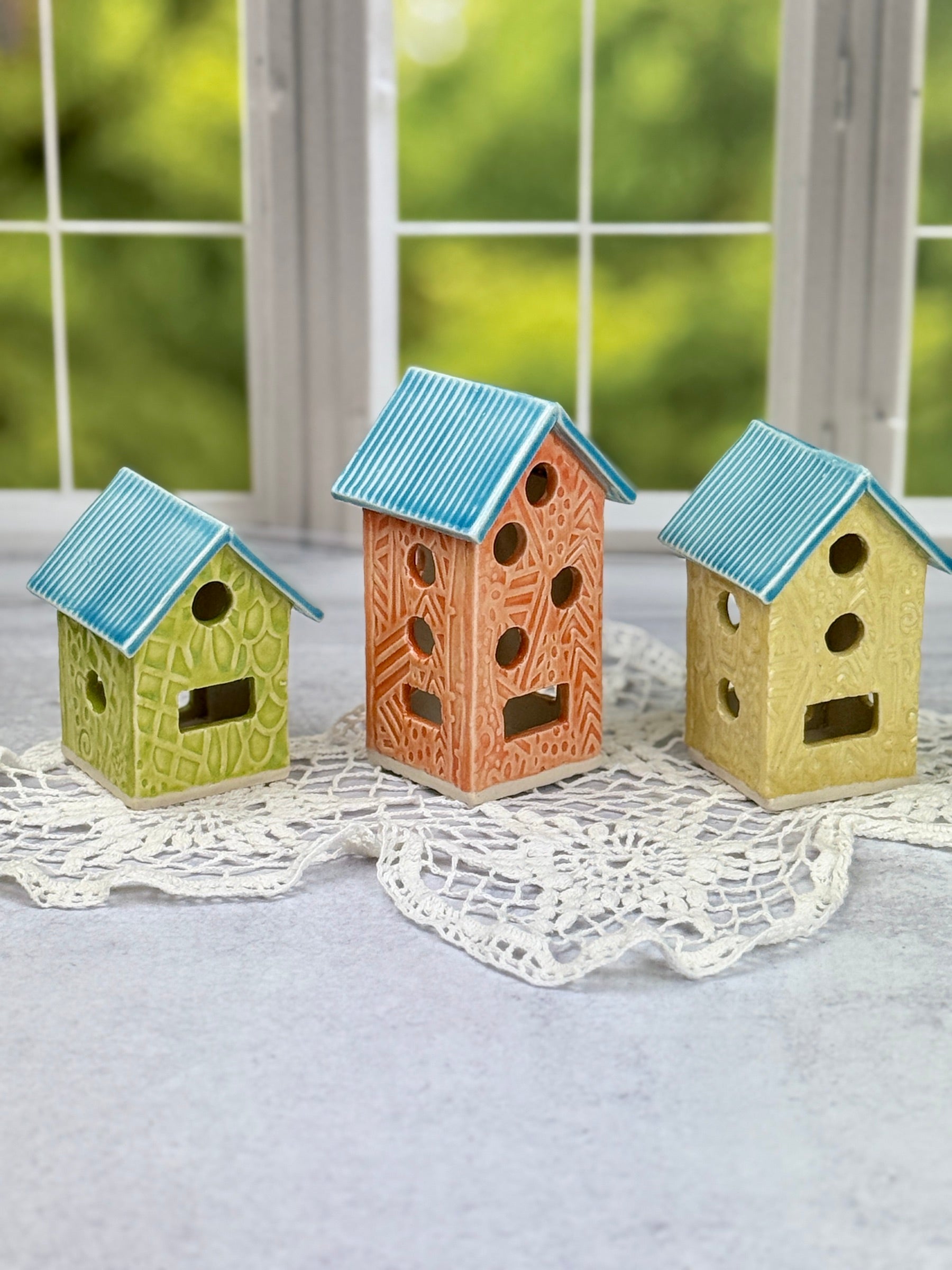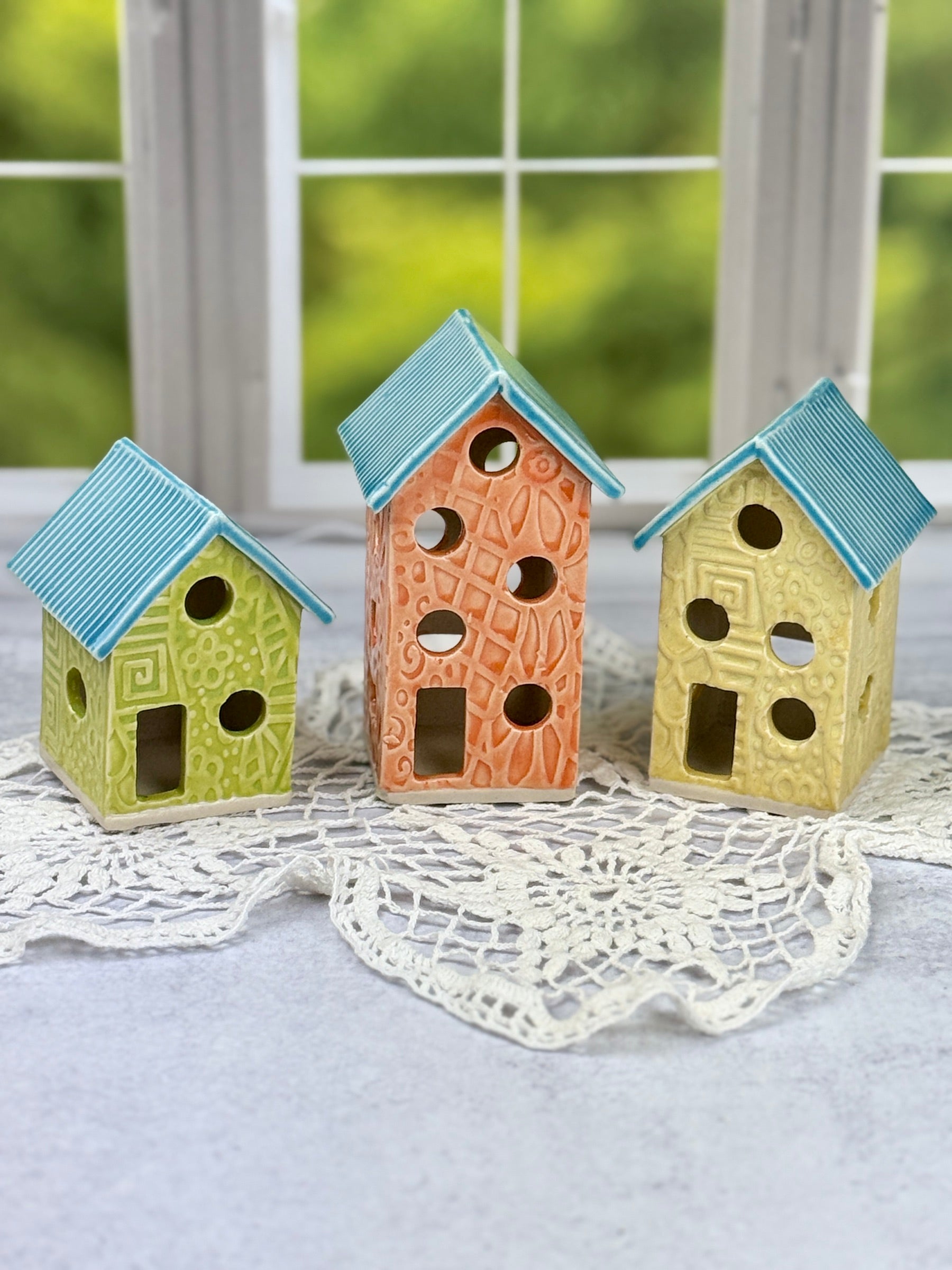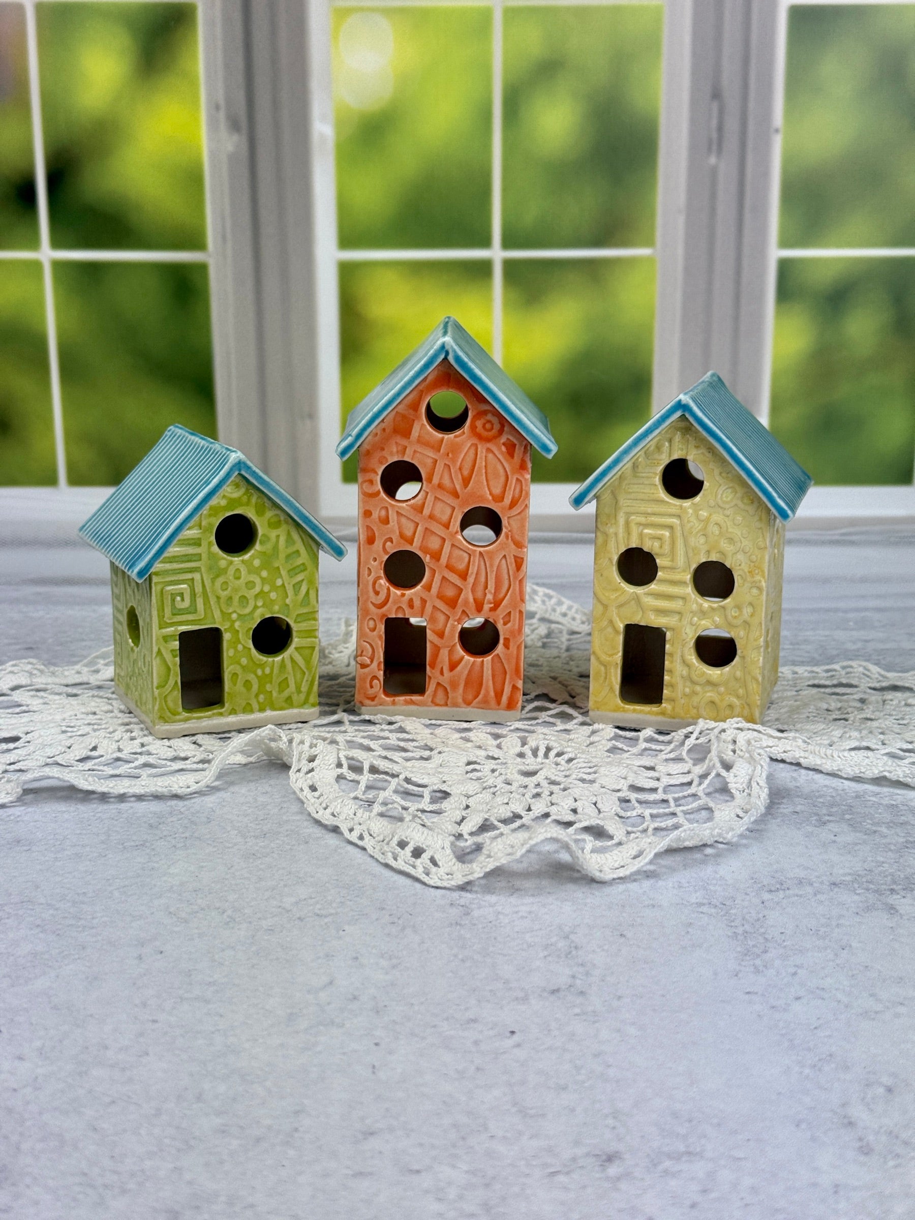 Transform your space with our vibrant Three Colorful Springtime Luminaries. These charming pieces are perfect for adding a whimsical touch to your fairy garden or home decor.