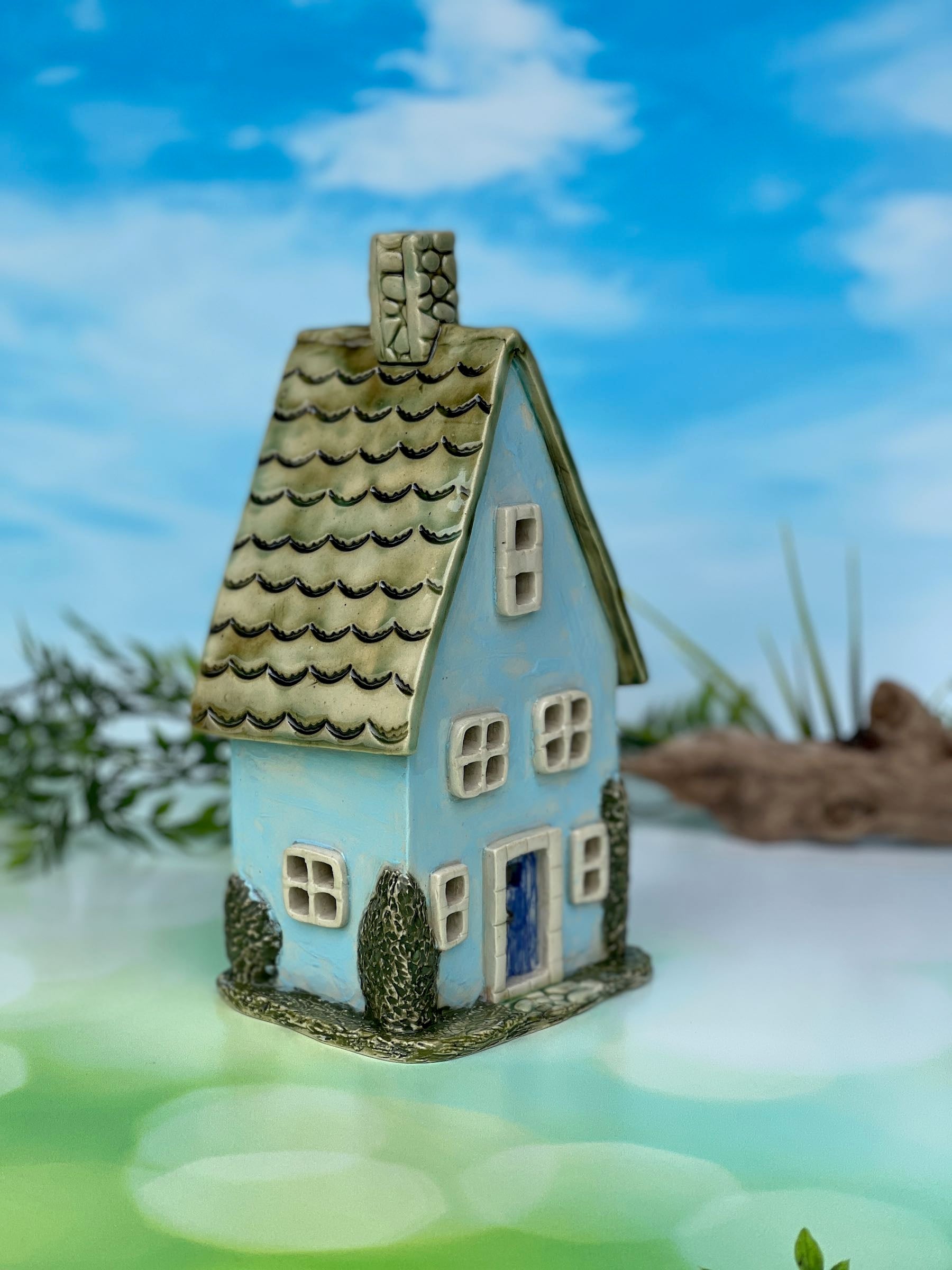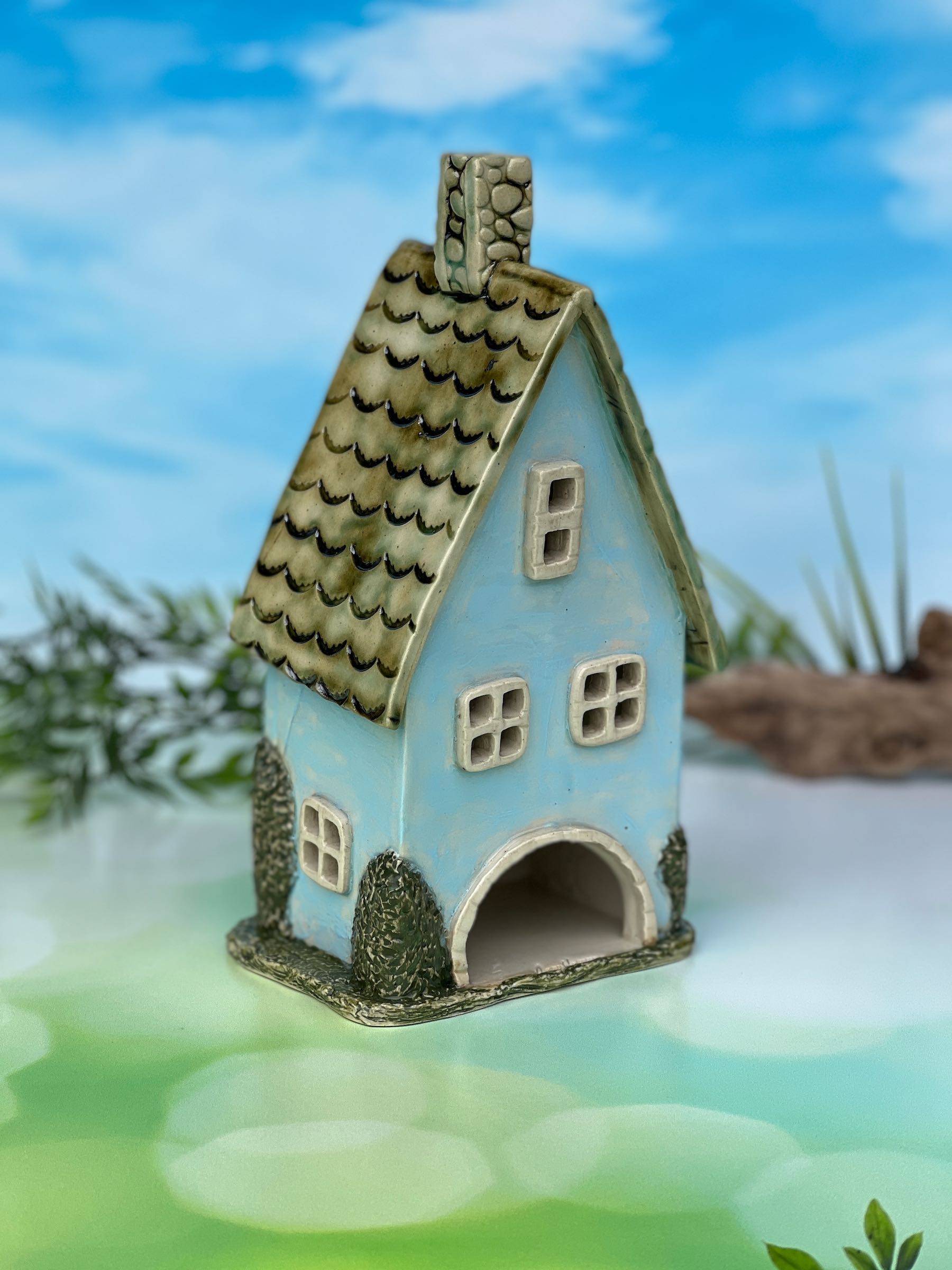 This Miniature house can even serve as a lovely night light in a child's room, placed on a side table or fireplace mantle. Made with durable clay and fired to withstand all weather conditions, it will bring joy and whimsy to your space, rain or shine, inside or out.